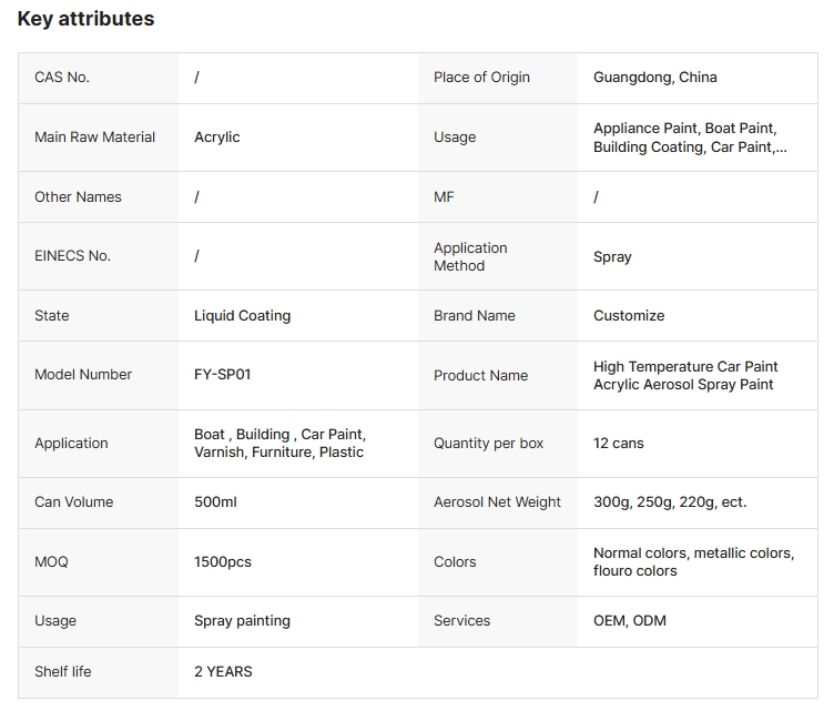 우리 공장에 오신 것을 환영합니다. 우리는 고온 저항성 컬러 스프레이 페인트의 주요 공급 업체입니다. 우리의 특수 공식은 생생하고 오래 지속되는 색상을 제공하면서 극한의 온도를 견딜 수 있습니다.